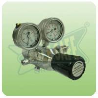 Two Stage Pressure Regulator yields a delivery pressure change with varying inlet pressure which minimizes the supply pressure effect caused by decaying inlet pressure. The high pressure regulator is manufactured from stainless steel which prevent atmospheric corrosion and requires less maintenance