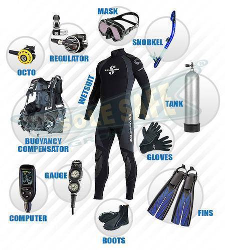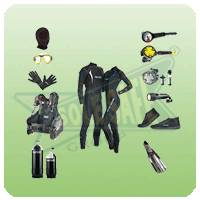 Under Water Diving Kit comprises of all the necessary equipment required to go underwater by making it possible to breathe, see and move comfortably while below the water surface. The underwater diving equipment includes wet or dry suit, hood, gloves, cylinder, pressure gauge, fins, knife, mask, torch, etc. Spares of suit are also separately available.
